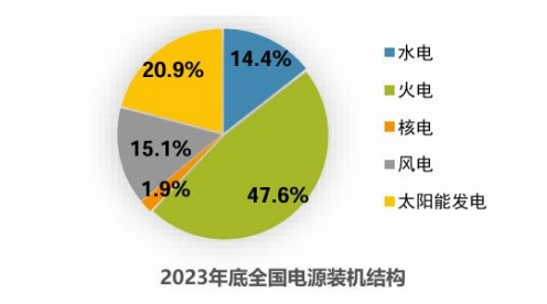 經(jīng)過(guò)幾年的發(fā)展,截至2023年底我國(guó)的電源裝機(jī)結(jié)構(gòu)如上圖所示,基本達(dá)到傳統(tǒng)能源與綠色能源各占半壁江山的情況。