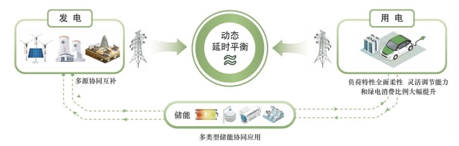 新型電力系統(tǒng)終極目標(biāo)是形成發(fā)電、用電及儲(chǔ)能三個(gè)維度之間的動(dòng)態(tài)平衡。發(fā)電端形成多種能源方式并存,協(xié)同互補(bǔ);通過(guò)建立多類(lèi)型儲(chǔ)能電站,使得用電端達(dá)到柔性調(diào)節(jié),綠電優(yōu)先的效果。