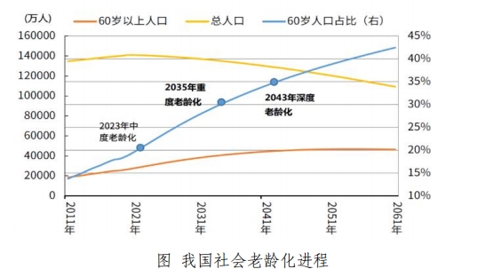 我國已于1999年步入老齡化社會,且程度繼續(xù)加深。截至2023年末,60周歲以上的人口數(shù)量已經(jīng)增長至29697萬人,占全部人口數(shù)量的比重為21.1%,進(jìn)入中度老齡化社會。