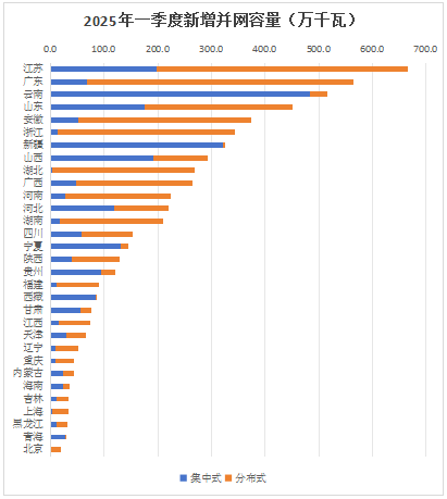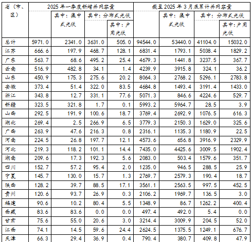 2025年一季度光伏發(fā)電建設(shè)情況(單位:萬千瓦):