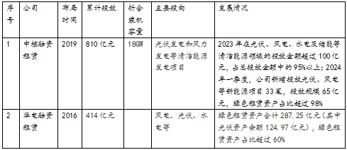 光伏、風(fēng)能等新能源發(fā)電項(xiàng)目具有投資成本較高、回本周期較長的特征。而融資租賃具有融資+融物的雙重優(yōu)勢,可以為新能源市場相關(guān)主體提供個性化的融資方案,目前國內(nèi)多家租賃公司切入新能源細(xì)分領(lǐng)域。