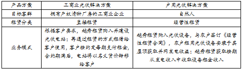 公司光伏業(yè)務(wù)主要分為工商業(yè)光伏解決方案和戶用光伏解決方案兩種產(chǎn)品方案,具體要素如下: