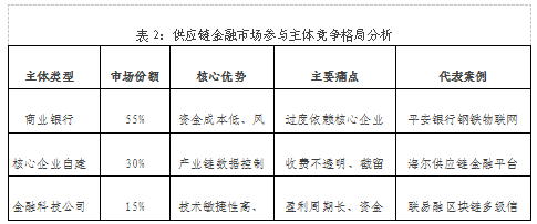 市場參與主體從傳統(tǒng)金融機構單核驅(qū)動轉(zhuǎn)向三元生態(tài)結(jié)構,各類主體呈現(xiàn)差異化優(yōu)劣勢: