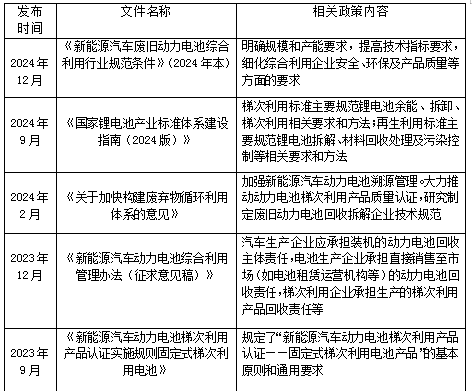 近年來(lái),一系列行業(yè)政策從回收責(zé)任劃分、技術(shù)標(biāo)準(zhǔn)與認(rèn)證、補(bǔ)貼與資金支持、產(chǎn)業(yè)協(xié)同與市場(chǎng)推廣、安全與環(huán)保要求等多維度發(fā)力,全面推進(jìn)動(dòng)力電池回收利用體系建設(shè)。