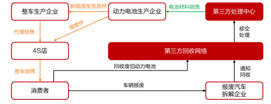 第三方回收模式是指由電池生產(chǎn)商或整車制造商委托專業(yè)的第三方企業(yè)來(lái)負(fù)責(zé)廢舊動(dòng)力電池的回收,進(jìn)而實(shí)現(xiàn)“電池回收+再生利用”的商業(yè)模式。