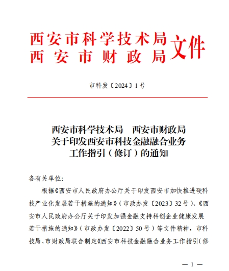 《西安市科技金融融合業(yè)務(wù)工作指引(修訂)》(市科發(fā)【2024】1號(hào))