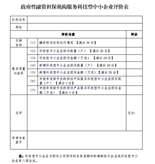 附件:政府性融資擔(dān)保機(jī)構(gòu)服務(wù)科技型中小企業(yè)評(píng)價(jià)表